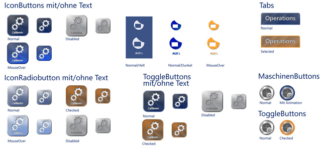 - Implementation of the elements and screens as markup language (XAML and HTML)